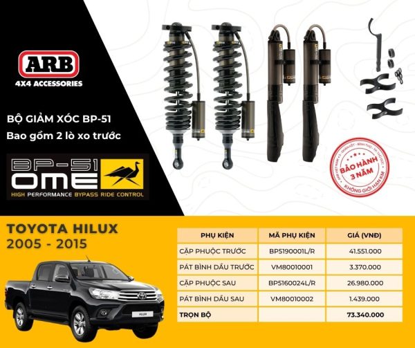 Giảm xóc BP-51 là một trong những dòng giảm xóc cao cấp nhất hiện nay, được ưa chuộng bởi những người đam mê độ xe và yêu cầu cao về khả năng vận hành của xe. Được sản xuất bởi ARB, một thương hiệu nổi tiếng trong lĩnh vực phụ tùng và phụ kiện off-road, BP-51 mang đến những ưu điểm vượt trội so với các dòng giảm xóc thông thường.
