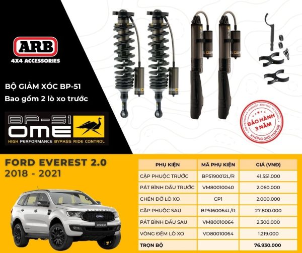 Giảm xóc BP-51 là một trong những dòng giảm xóc cao cấp nhất hiện nay, được ưa chuộng bởi những người đam mê độ xe và yêu cầu cao về khả năng vận hành của xe. Được sản xuất bởi ARB, một thương hiệu nổi tiếng trong lĩnh vực phụ tùng và phụ kiện off-road, BP-51 mang đến những ưu điểm vượt trội so với các dòng giảm xóc thông thường.