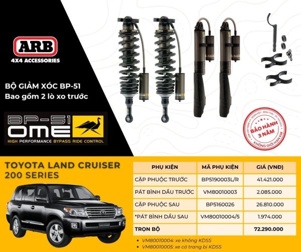 Giảm xóc BP-51 là một trong những dòng giảm xóc cao cấp nhất hiện nay, được ưa chuộng bởi những người đam mê độ xe và yêu cầu cao về khả năng vận hành của xe. Được sản xuất bởi ARB, một thương hiệu nổi tiếng trong lĩnh vực phụ tùng và phụ kiện off-road, BP-51 mang đến những ưu điểm vượt trội so với các dòng giảm xóc thông thường.
